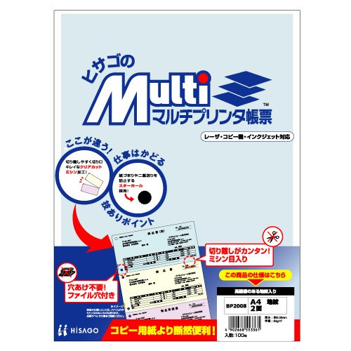 ヒサゴ マルチプリンタ帳票 A4 地紋 2面 BP2008 1セット(100枚入)