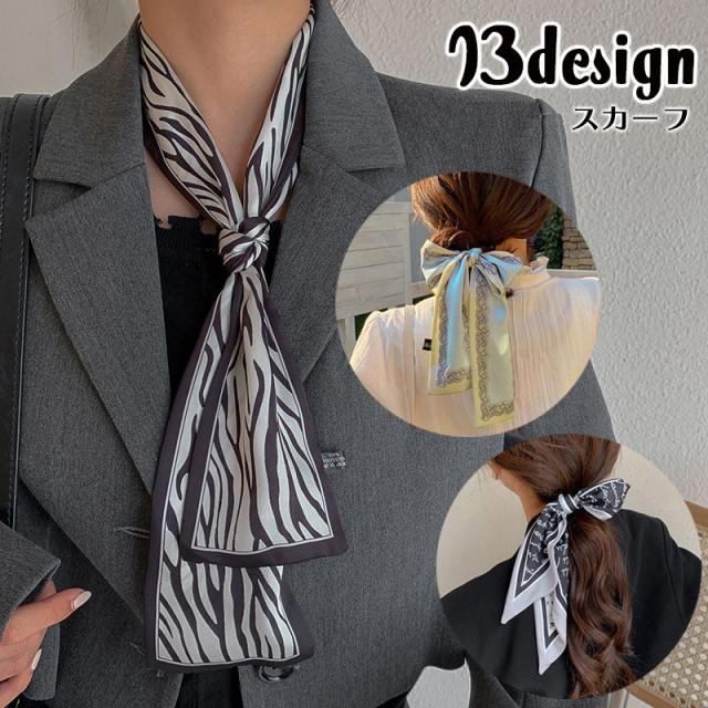 スカーフ レディース リボン ヘアアクセサリー バッグチャーム スリムスカーフ ヘアバンド バンダナ ゼブラ ドット フラワー