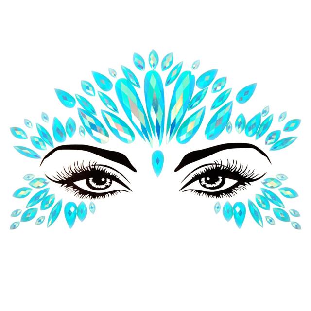フェイス用(目元・アイブロー用) ジェムボディステッカー 1シート 貼るアクセサリー クリスタル ラインストーン レディース ポールダンサー 女の人 セクシー 社交ダンス 踊り子 眉 顔面 頬 男性 女性 彼氏 彼女 人気 アクアブルー 青色 綺麗 グリッター キラキラ