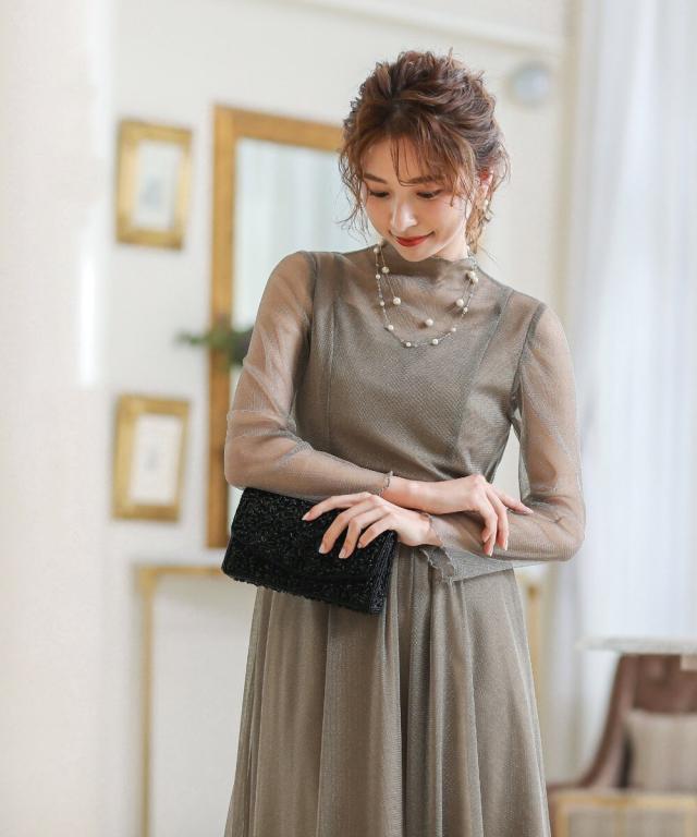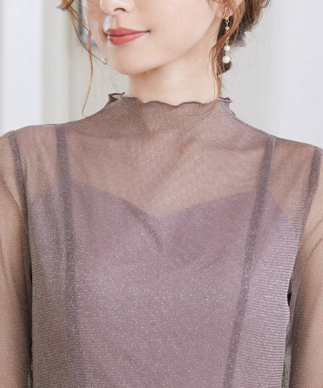 上品な透け感だからこそ、あえてハイネック&長袖にすることで大人の抜け感をプラス。