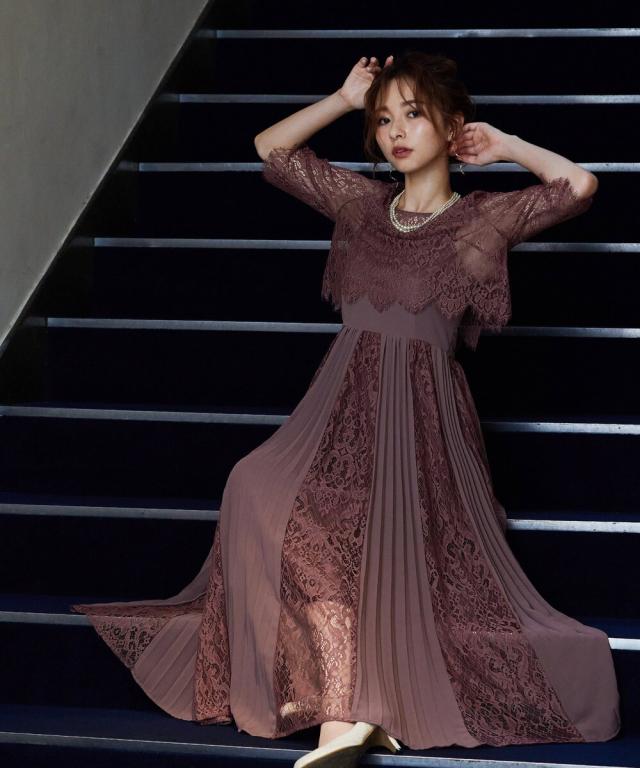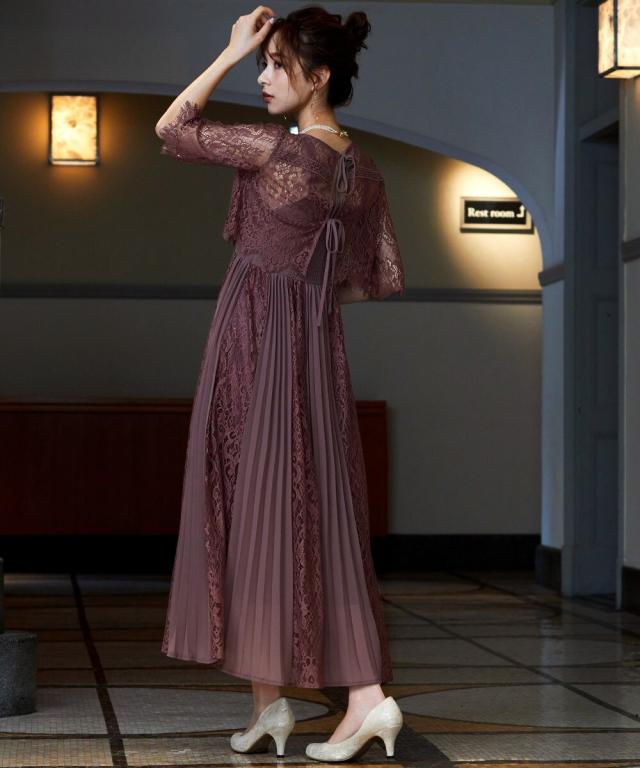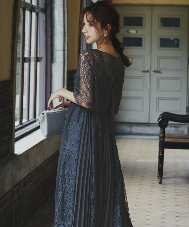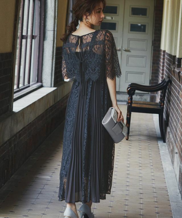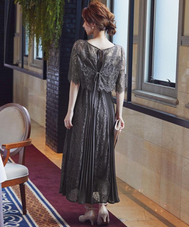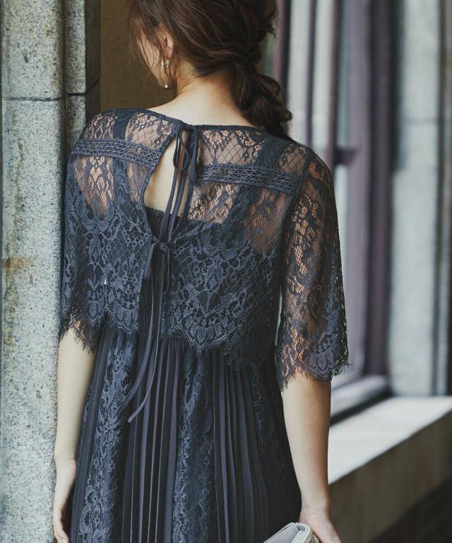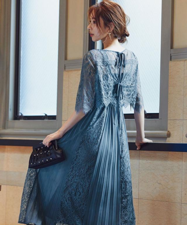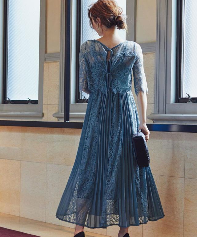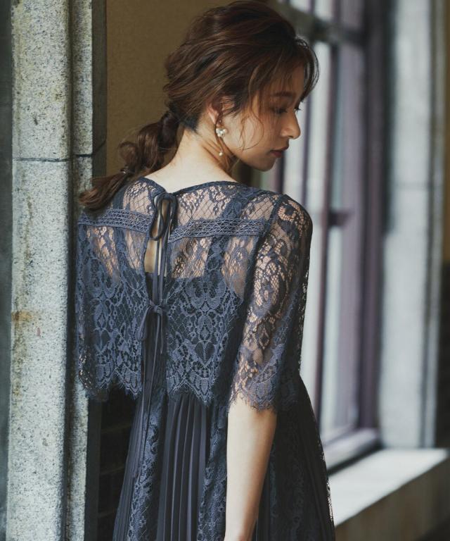 定番人気のプリーツ×レースデザインドレスに「バックリボン」をプラスしてトレンドライク。