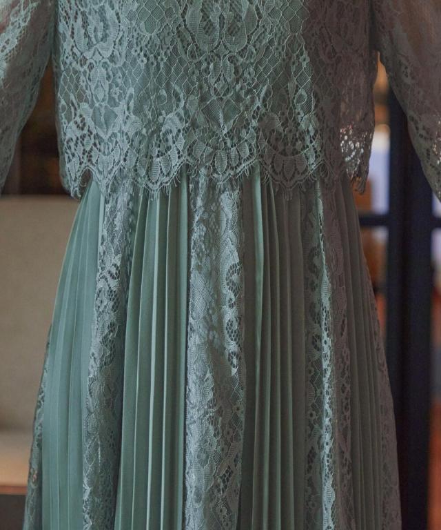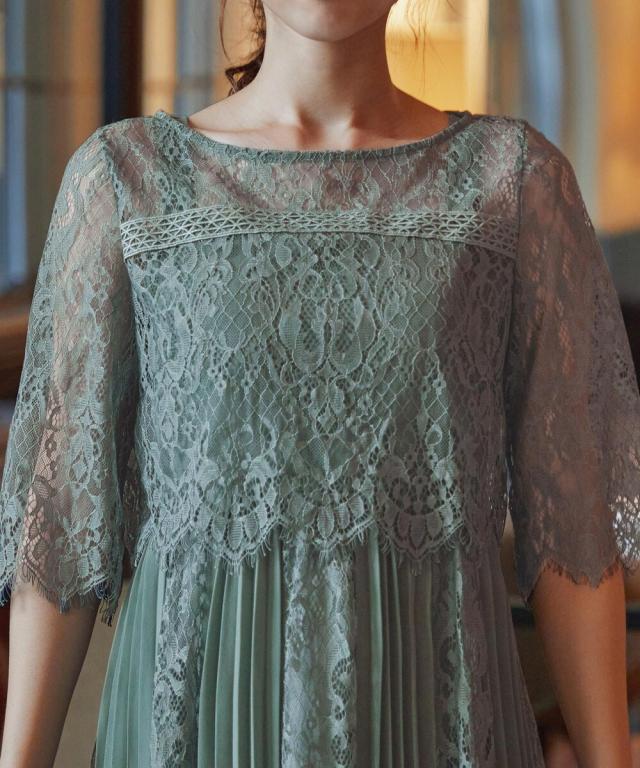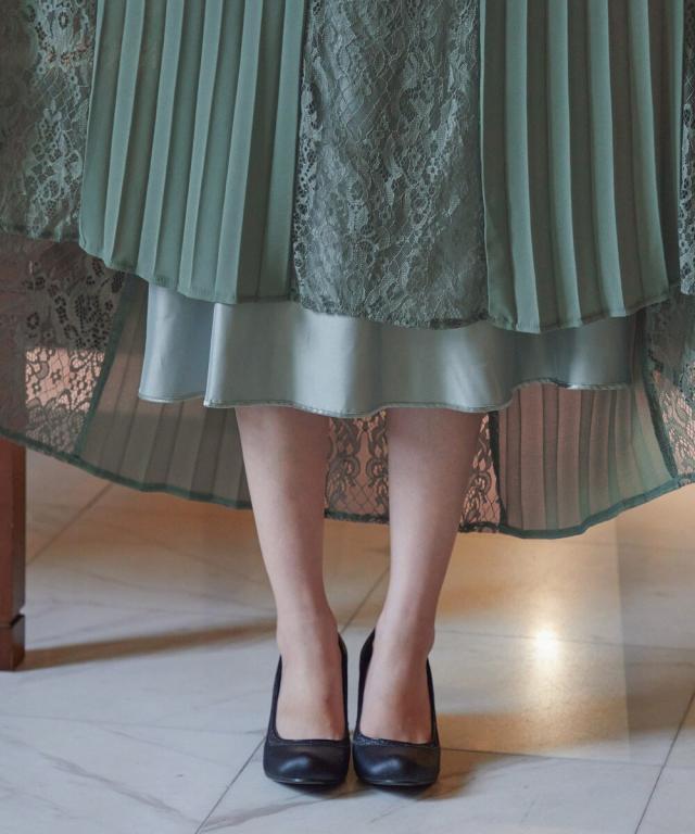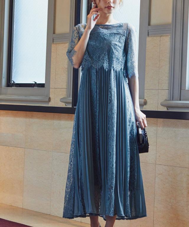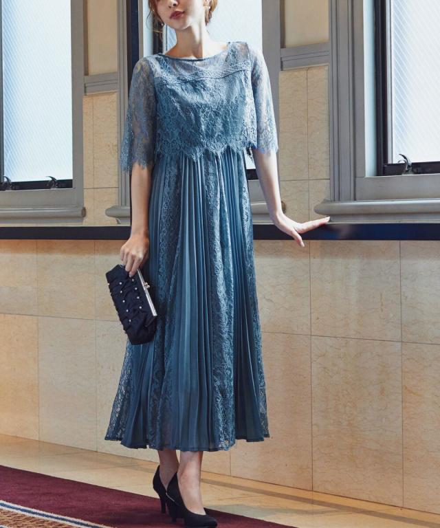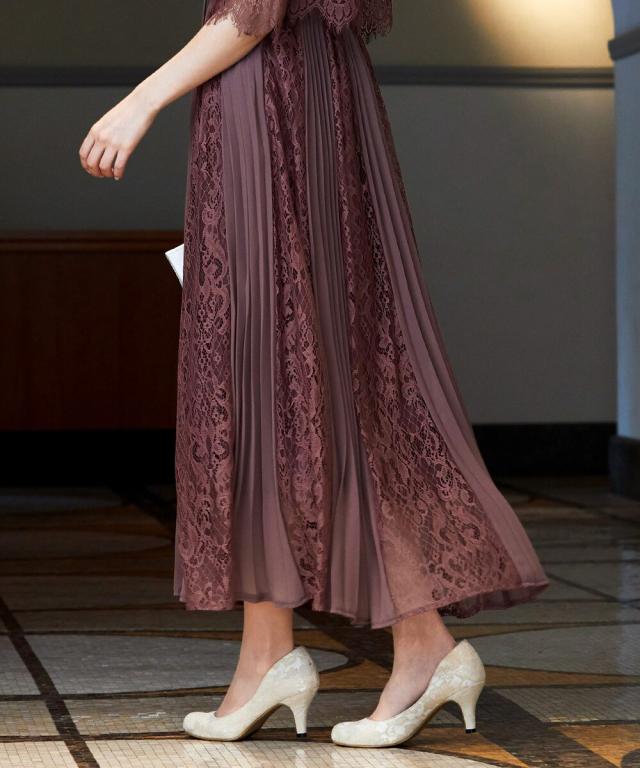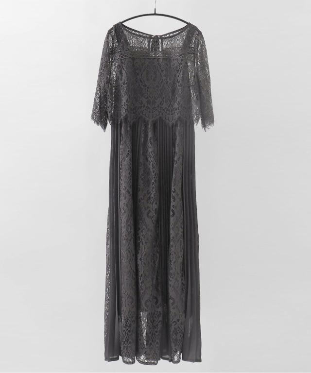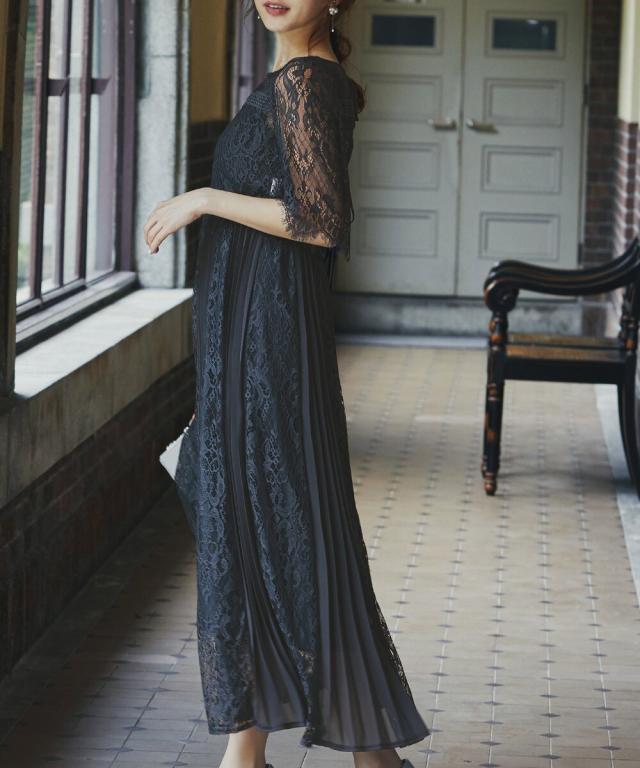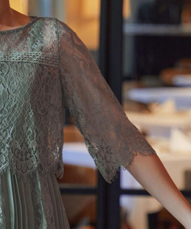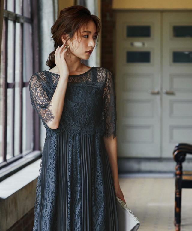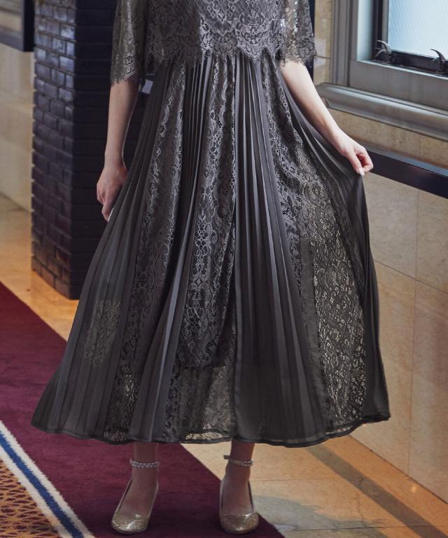 レース×プリーツの異素材使いで揺れるシルエットが優雅なワンピースはカジュアルアイテムと合わせて普段使いにもぴったり。