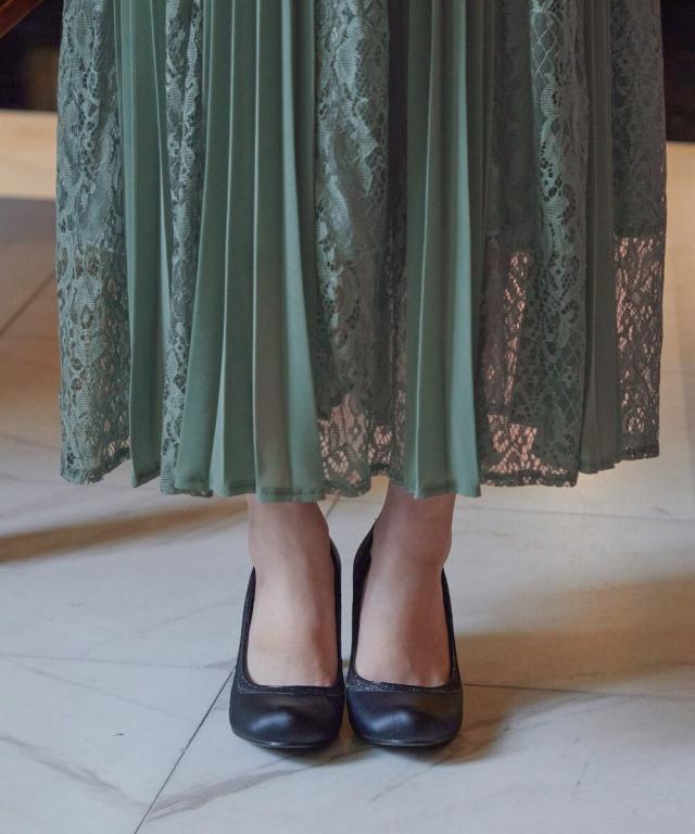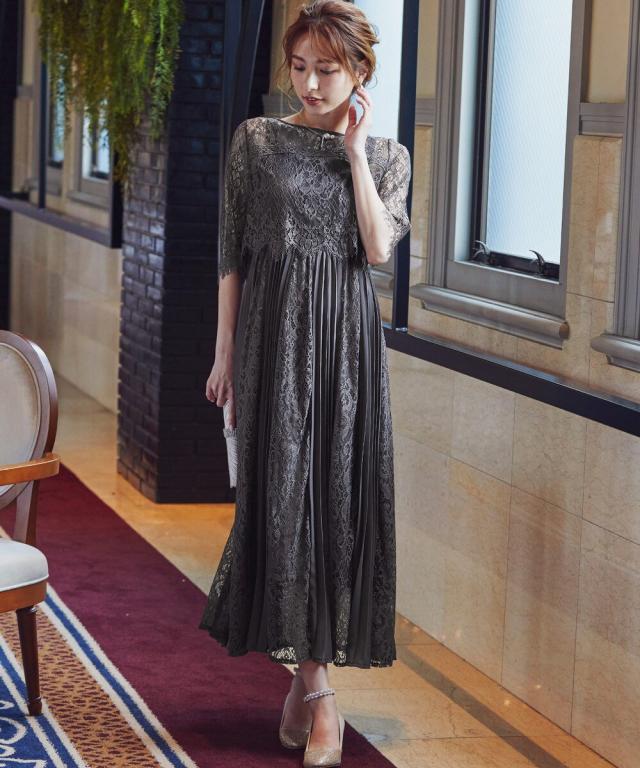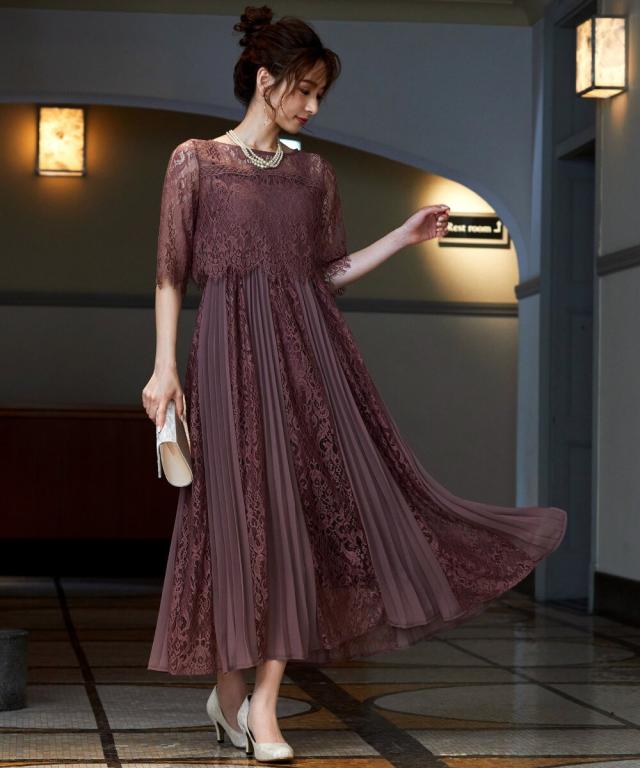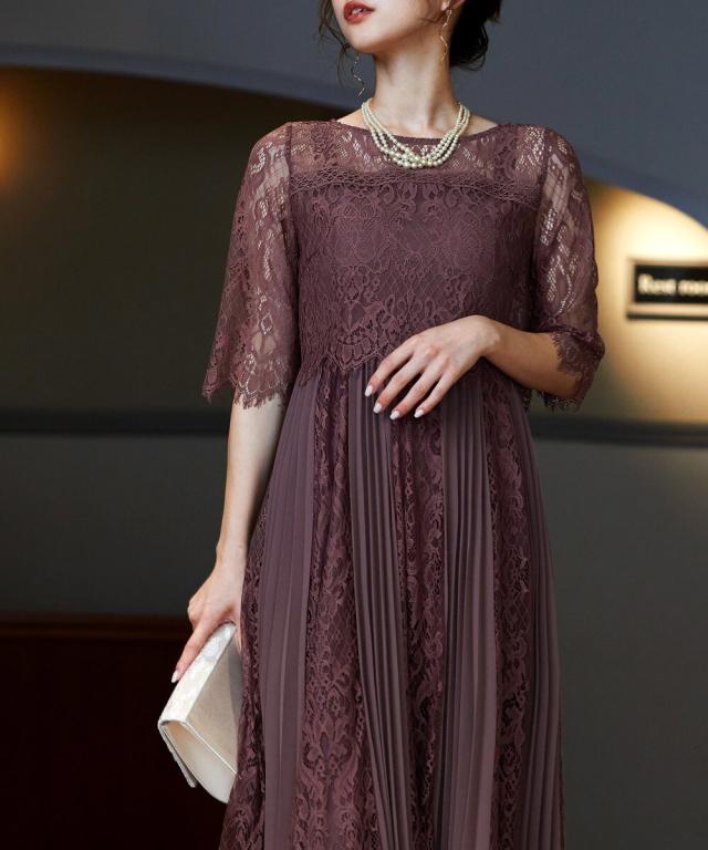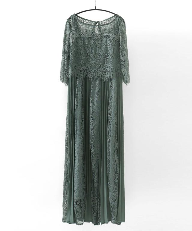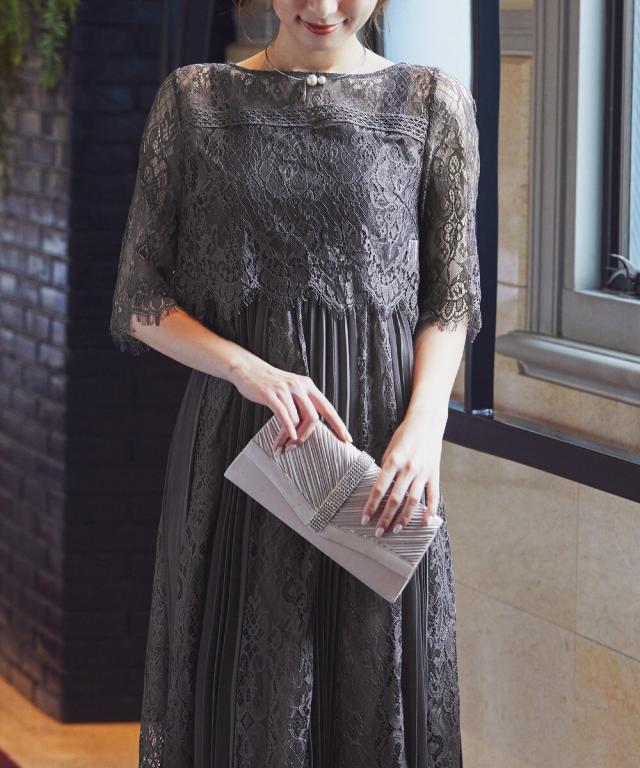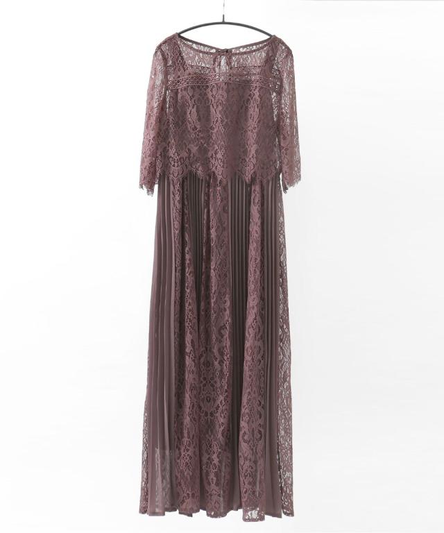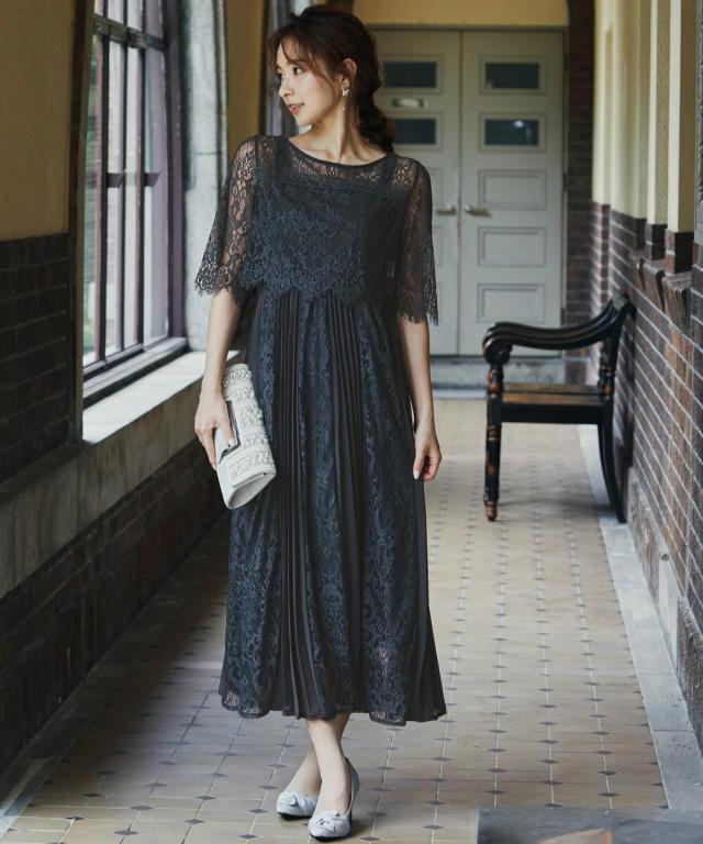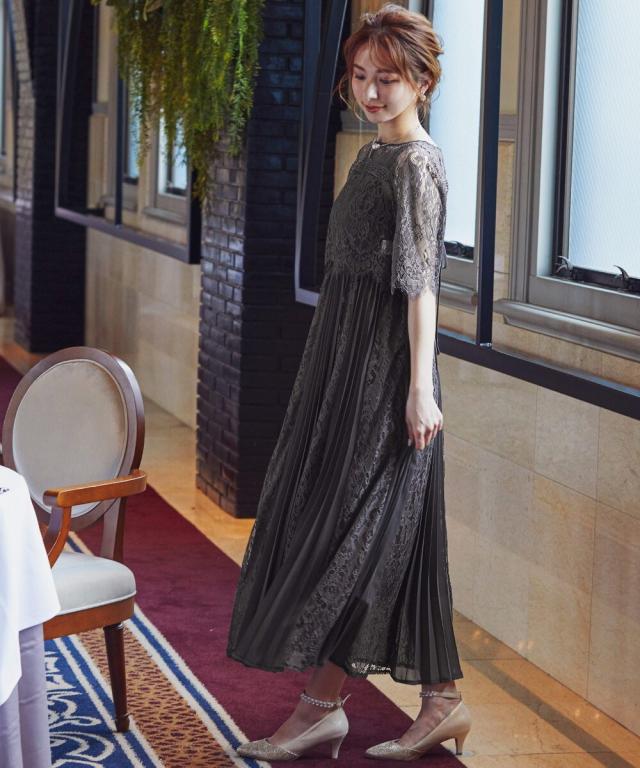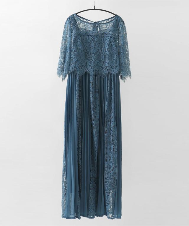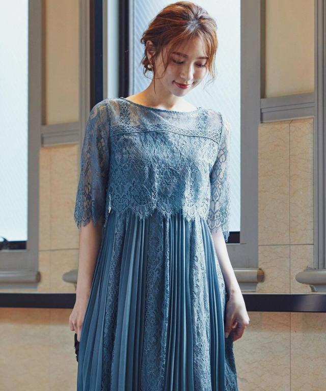レース×プリーツの異素材使いで揺れるシルエットが優雅なワンピースはカジュアルアイテムと合わせて普段使いにもぴったり。