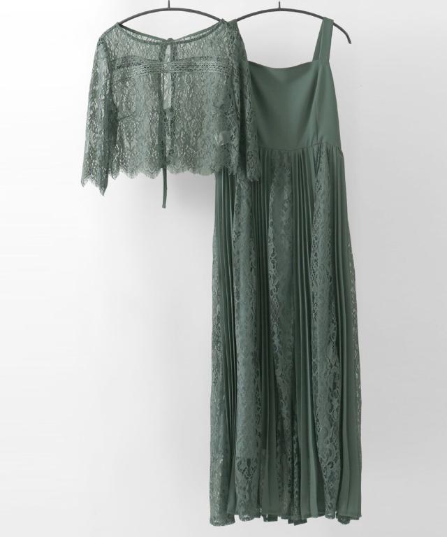 気になる二の腕をカバーしてくれるシアーな総レースブラウスにプリーツキャミワンピの2点。