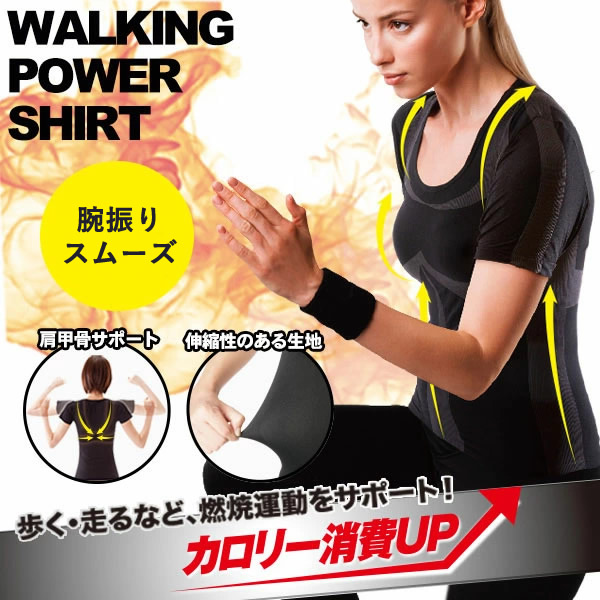 ウォーキングパワーシャツ (メール便送料無料) 女性用 ダイエット エクササイズ 着圧 加圧 シャツ インナー 下着 筋肉 燃焼 運動 カロリー消費 ウォーキング ジョギング テーピング