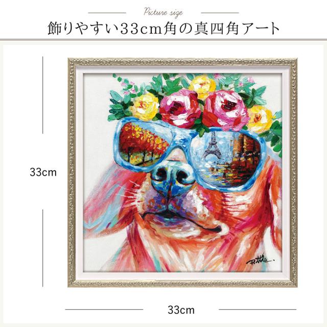 アートパネル,アートフレーム,油絵,北欧,オイルペイント,アート,動物,動物の絵,アニマル,アニマルアート,正方形,四角,スクエア,絵画,絵,オイル,ペイント,インテリア,モダン,額付き,額入り,額縁,壁,壁掛け,床置き,立て掛け,立てかけ,手描き,ハンドペイント,おしゃれ,イヌ,いぬ,犬,グッズ,ドッグ,サングラス,メガネ,眼鏡,花,フラワー,インテリアパネル,ポスター,キャンバス,モチーフ,ウォールアート,飾る,壁,人気,ソファー,部屋,リビング,寝室,ベッドルーム,玄関,廊下,モダン,エレガント,スタイリッシュ,カラフル,迫力,インパクト,ユニーク,鮮やか,店舗,お店,エステサロン,ネイルサロン,サロン,美容院,カフェ,待合室,内装,新居,新居祝い,新築,新築祝い,開店祝い,ハウスメーカー,モデルハウス,展示場,備品,お洒落,オシャレ,可愛い,新生活,トータルコーディネート,ディスプレイ,引っ越し,引越し,一人暮らし,独り暮らし,高級感,モダンアート,誕生日,誕生日プレゼント,大人