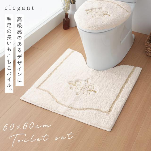 トイレマット フタカバーセット 2点セット 60×60cm トイレ フタカバー 蓋 カバー すべらない 滑り止め 洗える ふわふわ おしゃれ レギュラートイレマット・フタカバーセット エレガント