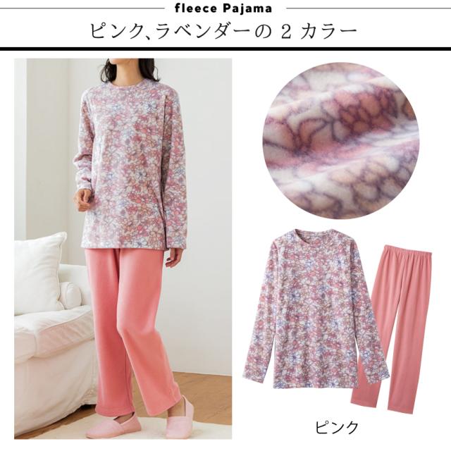 パジャマ レディース ルームウェア 長袖 冬 暖かい あったか 花柄 ピンク ふわふわ フリース 上下 かわいい 可愛い おしゃれ 女性 女性用 大きいサイズ 部屋着 シニア 母 祖母 50代 60代 70代 80代 入院用 秋冬 ギフト プレゼント 母の日