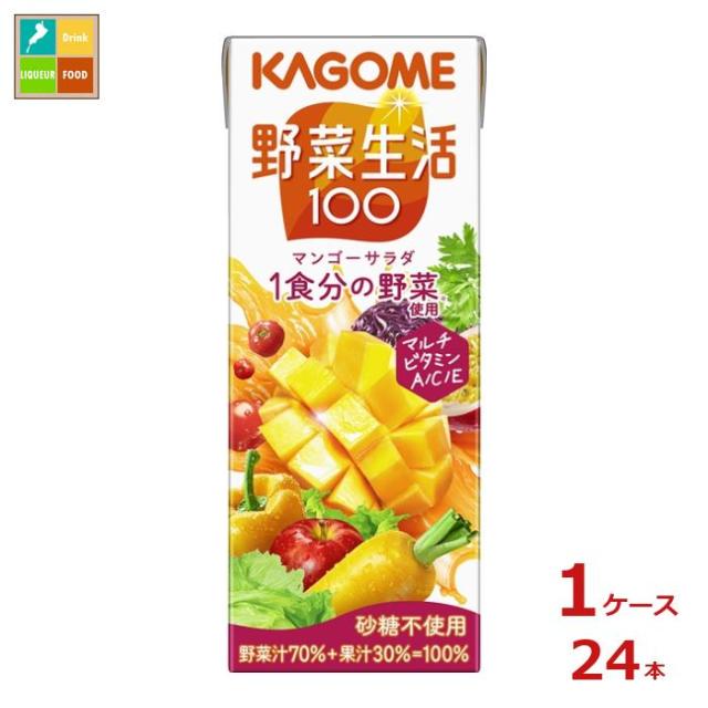 送料無料 カゴメ 野菜生活100 マンゴーサラダ200ml紙パック×1ケース(全24本)