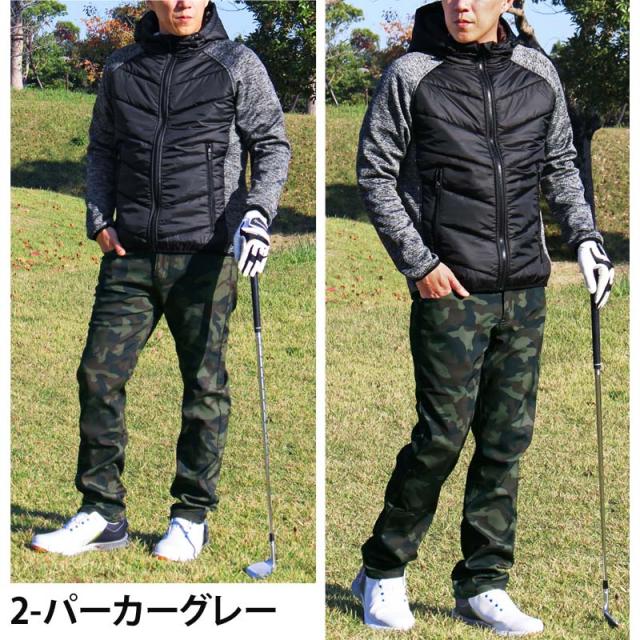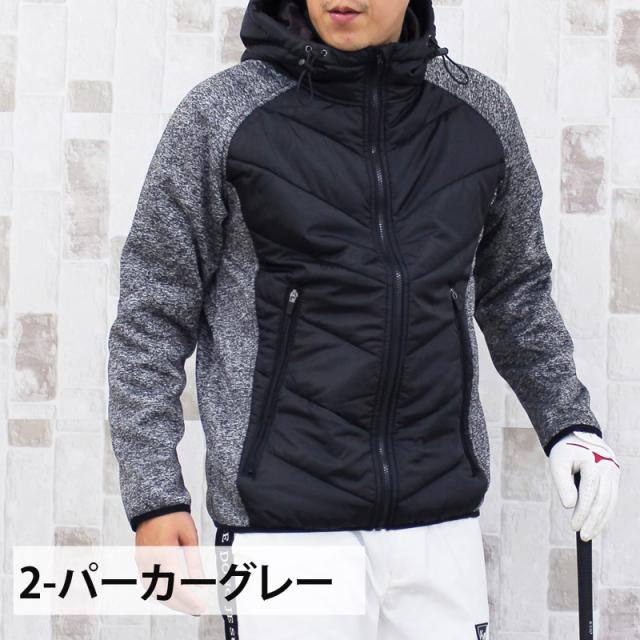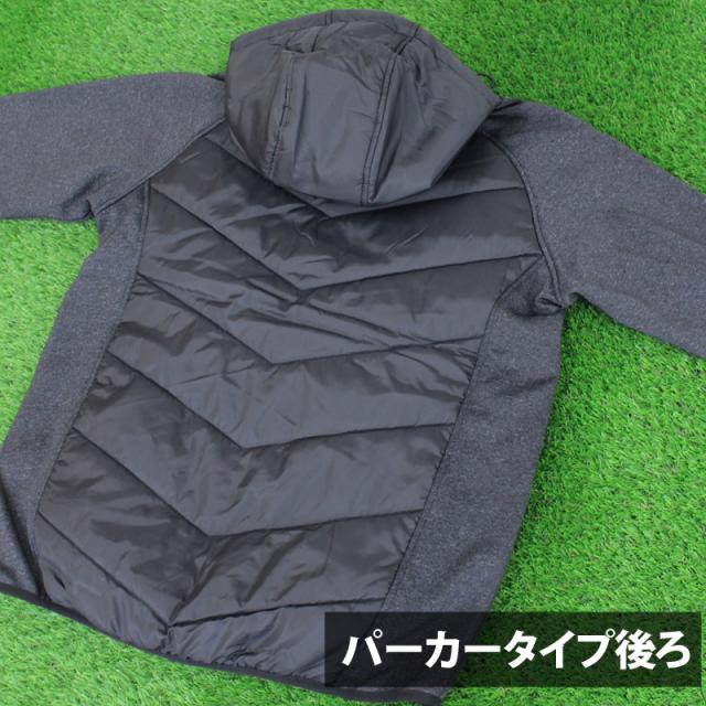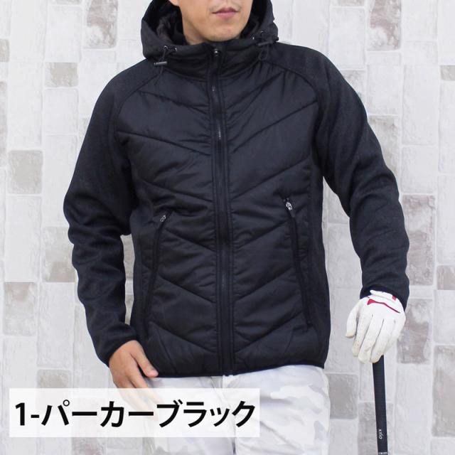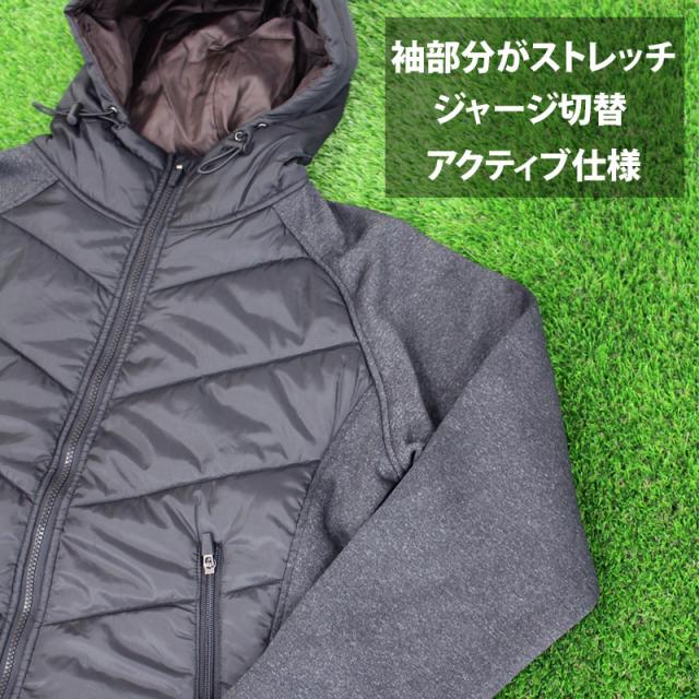 | 特徴 | スタンドとパーカーデザインの2タイプ! キルティング中綿ジャケットの袖と脇部分を ストレッチジャージ素材で切り替えたゴルフジャケット! ストレッチが効いていてアクティブに動けるデザインです。 袖裏の素材はフリースになっております。 ファッション性も楽しめ、アクティブに活用でき、 ゴルフ以外のスポーツやアウトドアにも活用できます。 軽量で動きやすく暖かい2タイプの異素材切替中綿ジャケットです | |||||