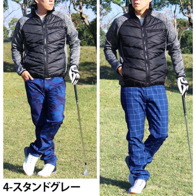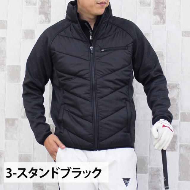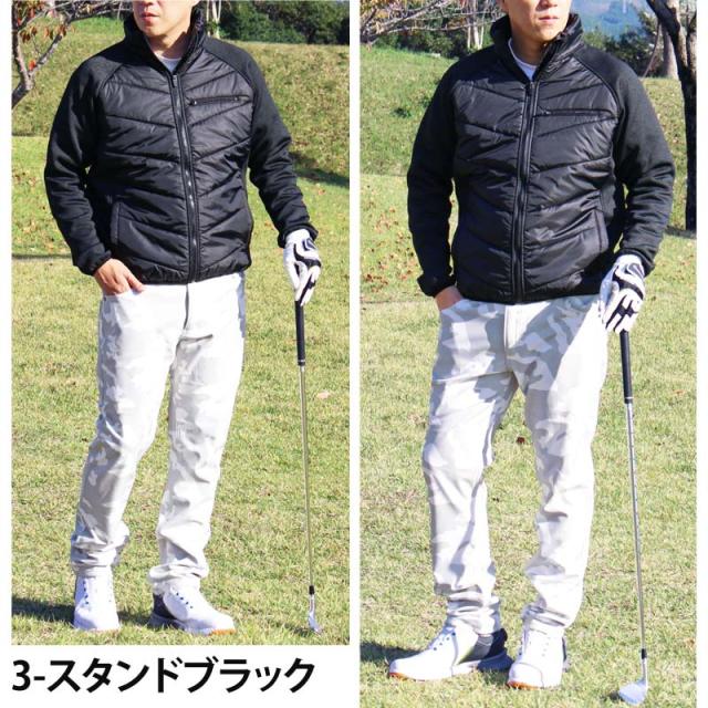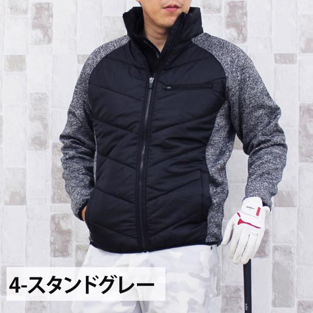 M~LL 新作 ゴルフウェア メンズ ゴルフジャケット 異素材切替 ナイロン ジャージ 中綿 ストレッチ アウター ブルゾン パーカー スタンドネック アウトドア M L LL 送料無料 おしゃれ 秋冬