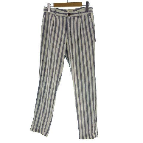 【中古】アングリッド UNGRID パンツ ストライプ リネン混 ネイビー 紺 アイボリー S レディース
