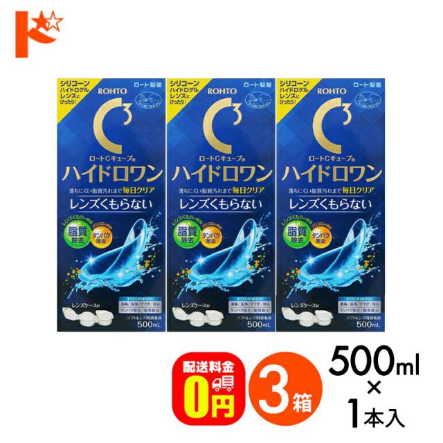 ◇《送料無料》ロートCキューブ ハイドロワン 500mL 3箱セット ソフトレンズ レンズケース付 ケア用品 消毒・洗浄・すすぎ・保存液