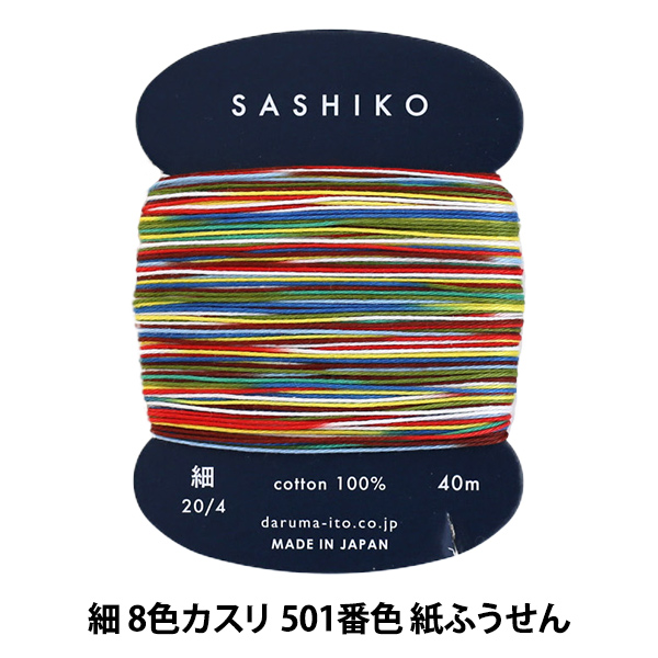 刺しゅう糸 『刺し子糸 (細) カード巻 8色カスリ 501番色 紙ふうせん』 DARUMA ダルマ 横田