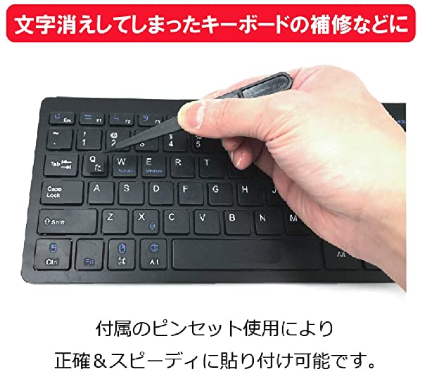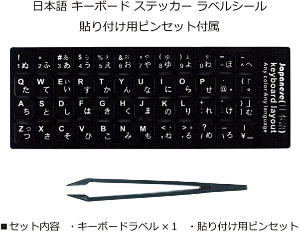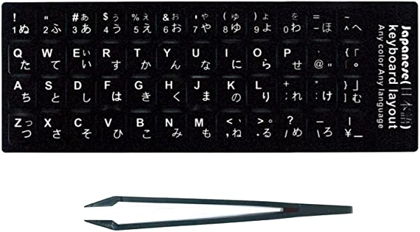 日本語 キーボード シール ステッカー ラベル 貼り付け用ピンセット付属 見えなくなった文字をキレイに修復 黒地×白文字
