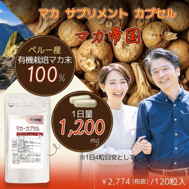 マカ サプリ 有機栽培マカ100% 1200mg マカ帝国マカ粉末カプセル 120粒 maca 人気 ランキング 送料無料