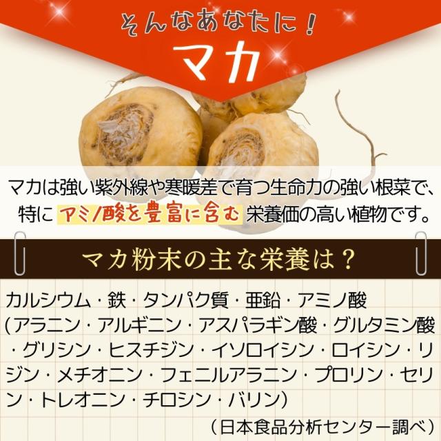マカには、精力対策に欠かせない成分、必須アミノ酸、ビタミン、ミネラル、亜鉛等が凝縮されています。