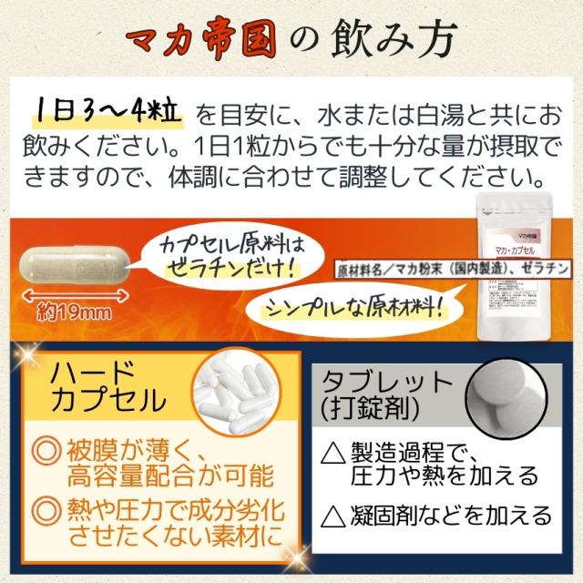 ●「マカ帝国」はハードカプセルにそのまま有用成分のみが充填されています。