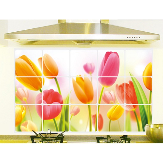 ウォールステッカー 温かい チューリップの花 防油 防汚 防水 台所用 キッチンシート 貼り付け 装飾 コンロまわり おしゃれ 掃除簡単