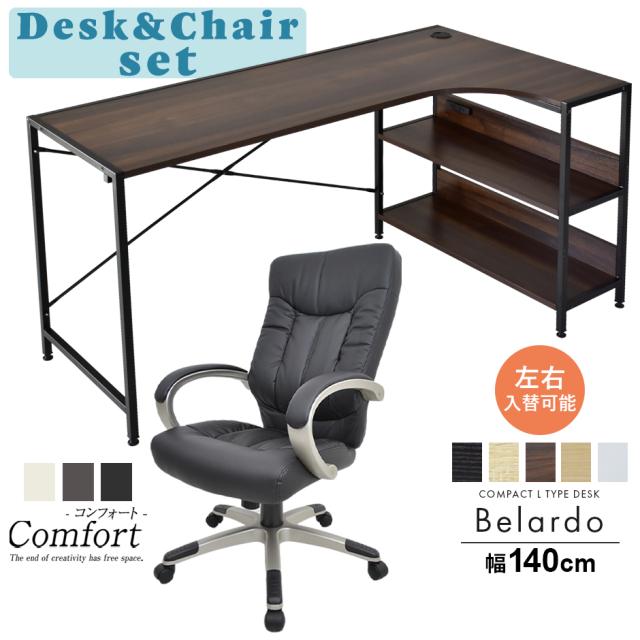 パソコンデスク PCデスク L字型 コーナー 木製 机 オフィスデスク l字 オフィスチェア ハイバック 肘付 デスクチェア ビジネスチェア ベラルド コンフォート