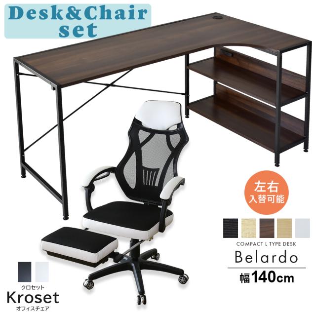 パソコンデスク PCデスク L字型 コーナー 木製 机 オフィスデスク l字 オフィスチェア リクライニングチェア フットレスト付き ハイバック ベラルド クロセット