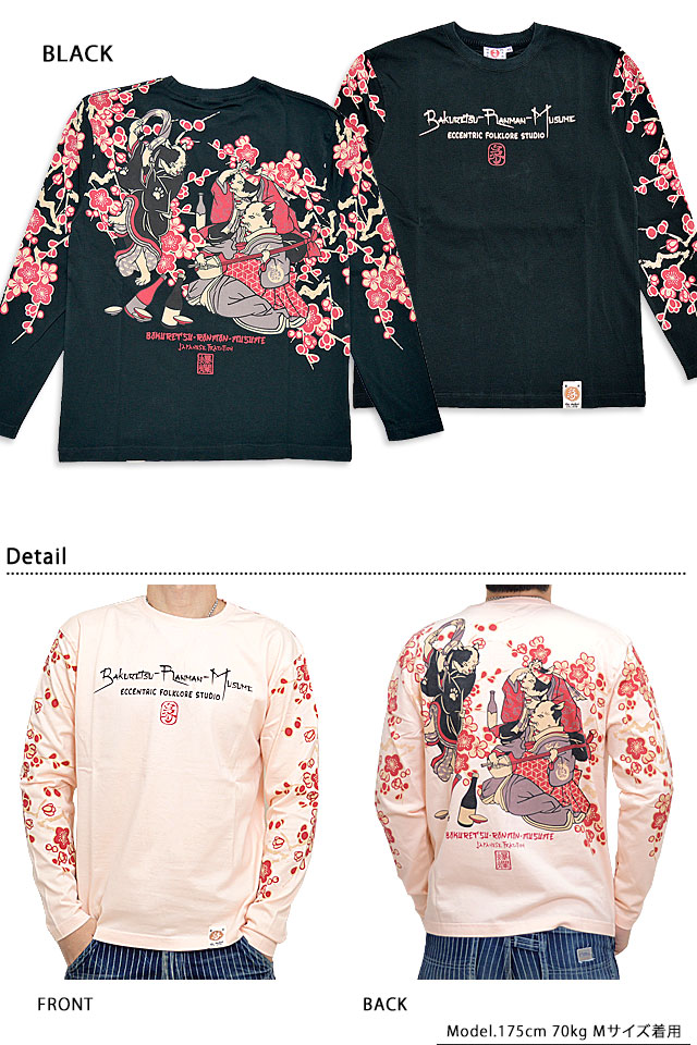 流行ねこじゃらしロングTシャツ 爆烈爛漫娘 RMLT-315 和柄 和風 猫 ネコ ロンT 長袖Tシャツ エフ商会 efu