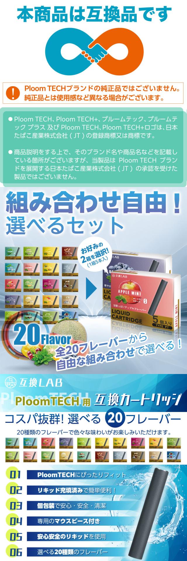 互換LAB プルームテック用 カートリッジ Ploom TECH用 互換ラボ 20フレーバー メンソール ミント 無味 無臭 使い捨て リキッド たばこカプセル 個包装 電子タバコ 電子たばこ VAPE 爆煙
