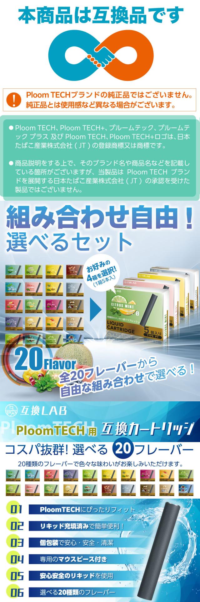互換LAB プルームテック用 カートリッジ Ploom TECH用 互換ラボ 20フレーバー メンソール ミント 無味 無臭 使い捨て リキッド たばこカプセル 個包装 電子タバコ 電子たばこ VAPE 爆煙