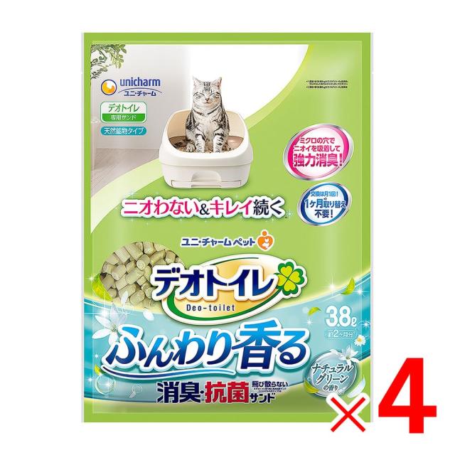 ユニ・チャーム デオトイレ ふんわり香る消臭・抗菌飛び散らないサンド ナチュラルグリーンの香り 3.8L ×4袋 ケース販売