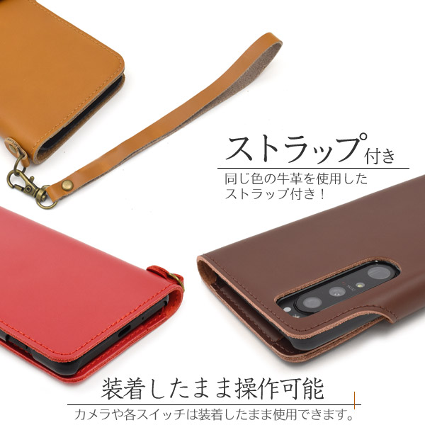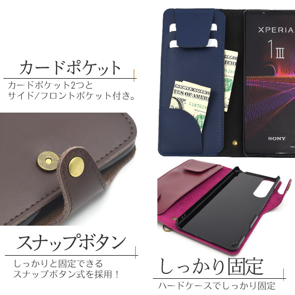 スマホケース Xperia 1 III SO-51B SOG03 A101S 手帳型 牛革 携帯ケース 無地 シンプル カード落下防止 フラップ付き ストラップ付 上品 ベーシック 可愛い シンプル オシャレ スマホアクセサリー おしゃれ スマホカバー かわいい au携帯カバー スマートフォンケース