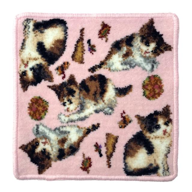 ハンカチ 猫柄【総柄三毛猫】タオルハンカチ シェニール織 23cm