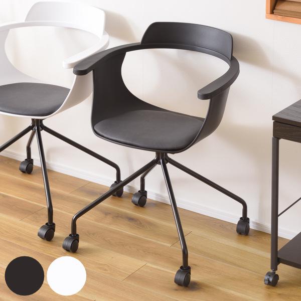 デスクチェア 座面高47cm オフィスチェア キャスター チェア 肘掛け テレワーク ( キャスターチェア 椅子 イス パソコンチェア 肘付き PCチェア チェアー ワークチェア デザインチェア おしゃれ 回転 ホワイト ブラック )