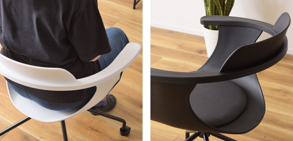 人の体の形に沿ったラインを意識したフォルムのデスクチェアです。自然に体にフィットする快適な座り心地です。