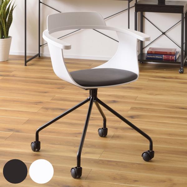 デスクチェア 座面高47cm オフィスチェア キャスター チェア 肘掛け テレワーク ( キャスターチェア 椅子 イス パソコンチェア 肘付き PCチェア チェアー ワークチェア デザインチェア おしゃれ 回転 ホワイト ブラック )
