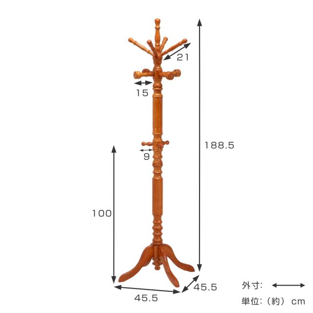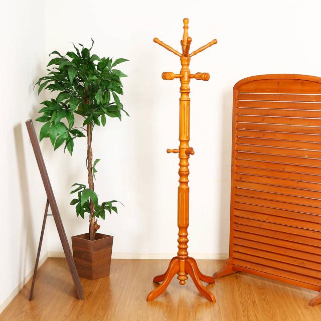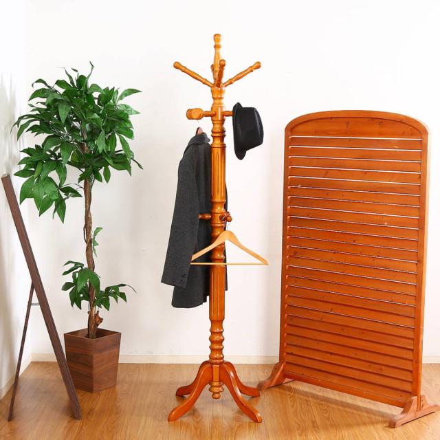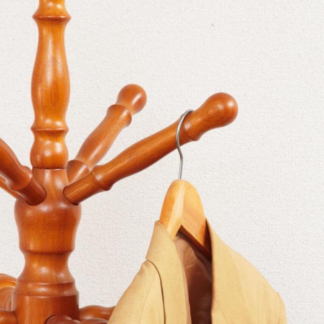 アンティーク調の高級感のある天然木を使用したコートハンガーです。重厚感のあるクラッシックな装いはお部屋に置いてあるだけで絵になります。狭い場所にもスマートに沢山衣類を掛けることができ、玄関やリビング・寝室と幅広い場所でお使いいただけます。玄関やリビングの入り口に置いて、来客用のコート掛けとしてもおすすめです。