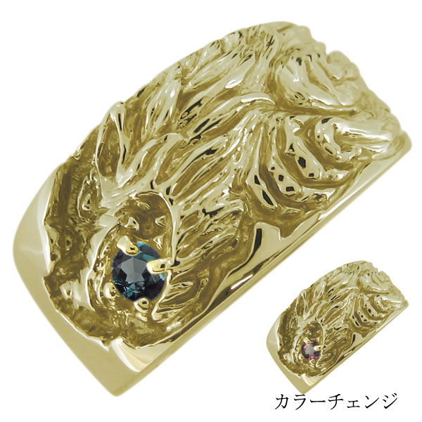 指輪 メンズ 狼 オオカミ アレキサンドライト 希少石 10金 ウルフリング