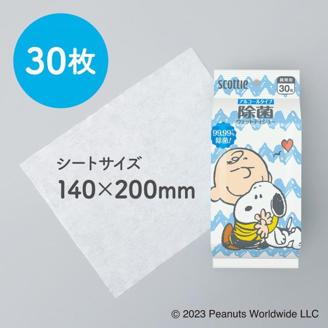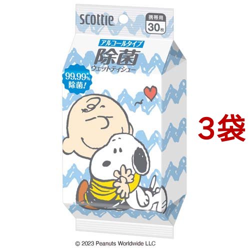スコッティ ウェットティッシュ 除菌 アルコールタイプ スヌーピー(30枚入*3袋セット)[ウェットティッシュ]