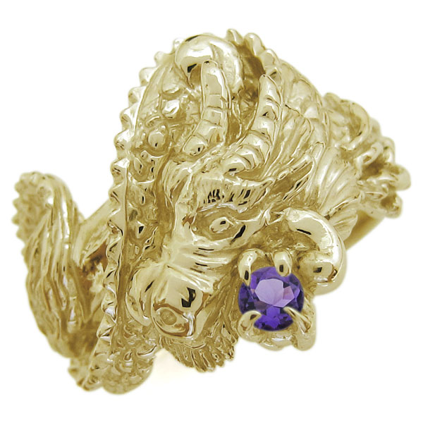 10金 アメジスト 龍 リング メンズ 指輪 ドラゴン
