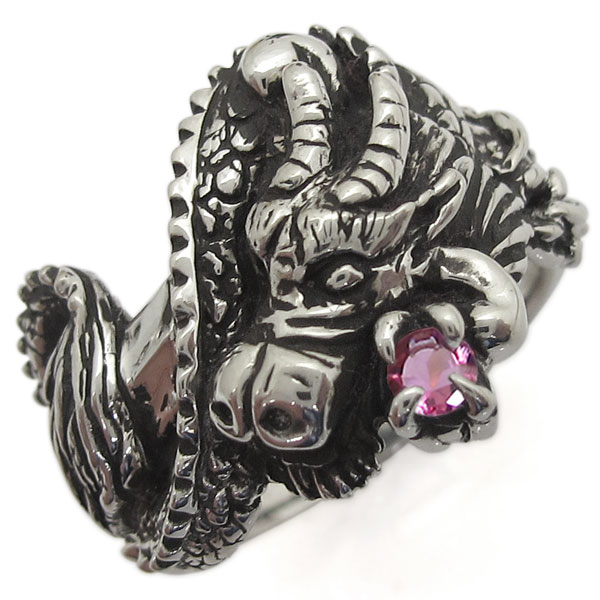 シルバーリング 龍 メンズ 指輪 ドラゴン ピンクトルマリン
