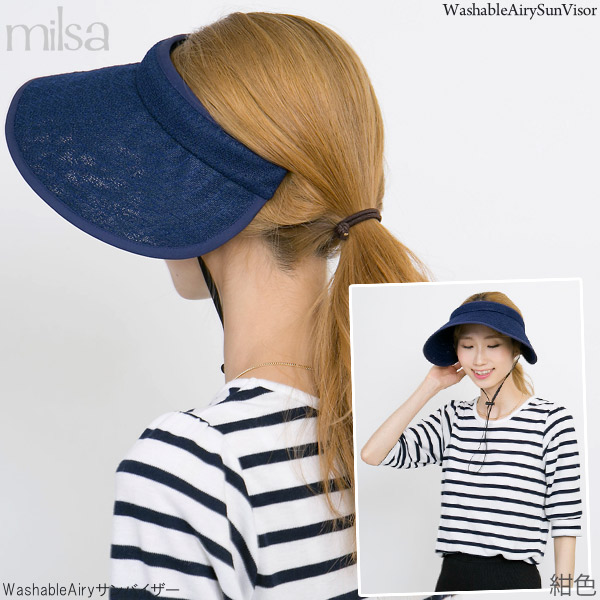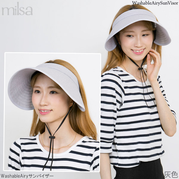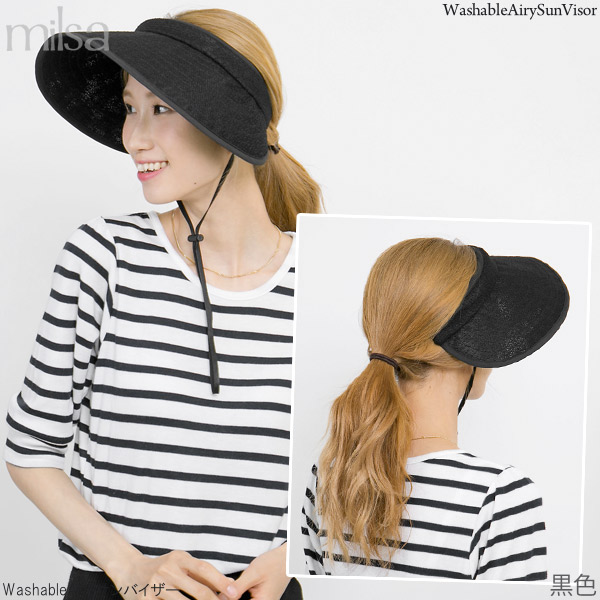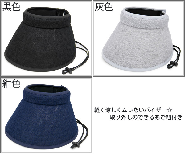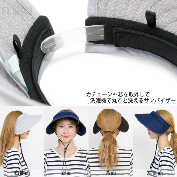 洗える サンバイザー 風で飛びにくい レディース あご紐つき UV対策 軽い 涼しい 吸水速乾 / WashableAiryサンバイザー