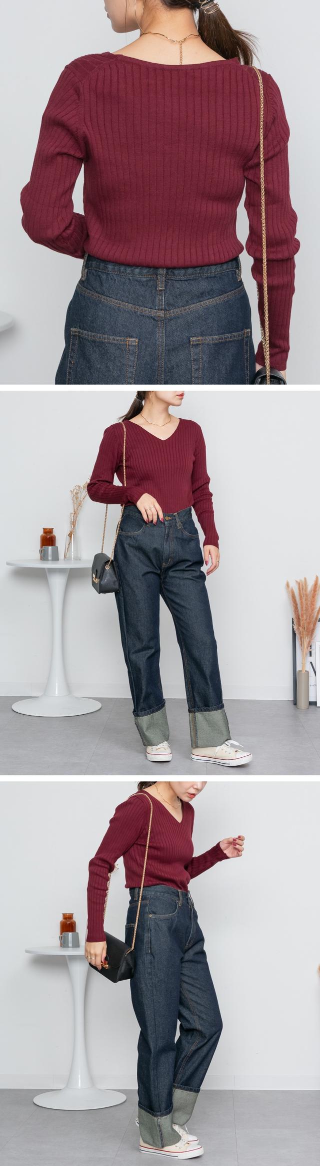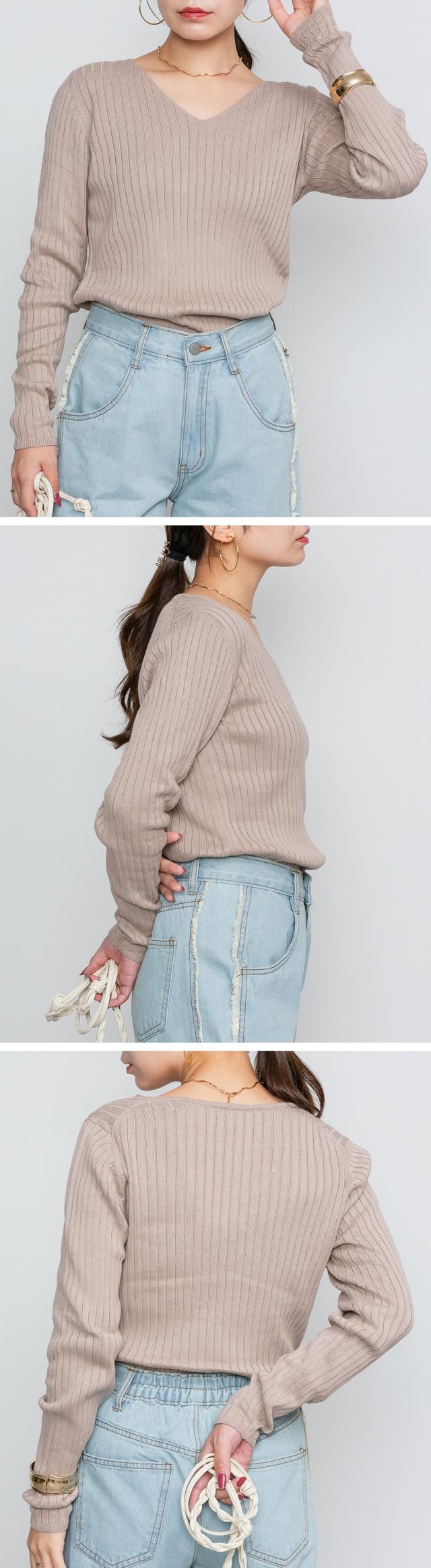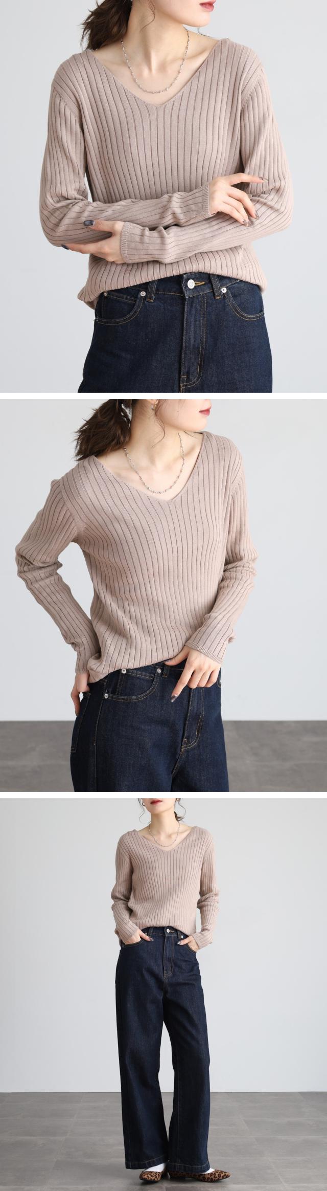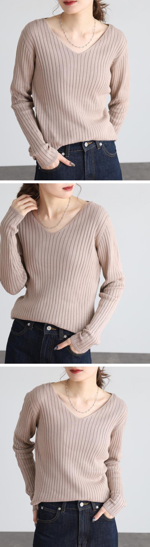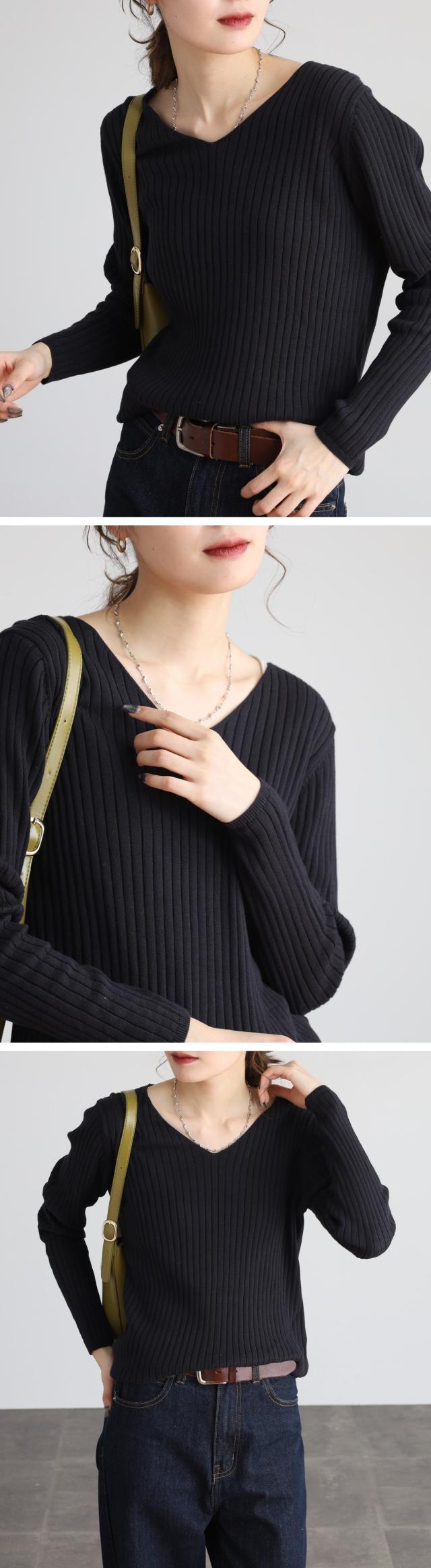 | スッキリとしたVネックデザインが顔周りをシャープに見せてくれるのでコーディネートのアクセントにも。シンプルながらも着回し力抜群のアイテムです♪ |