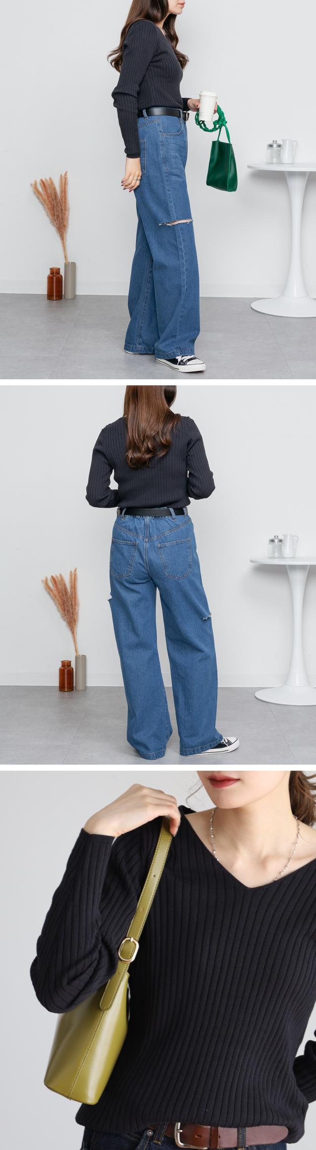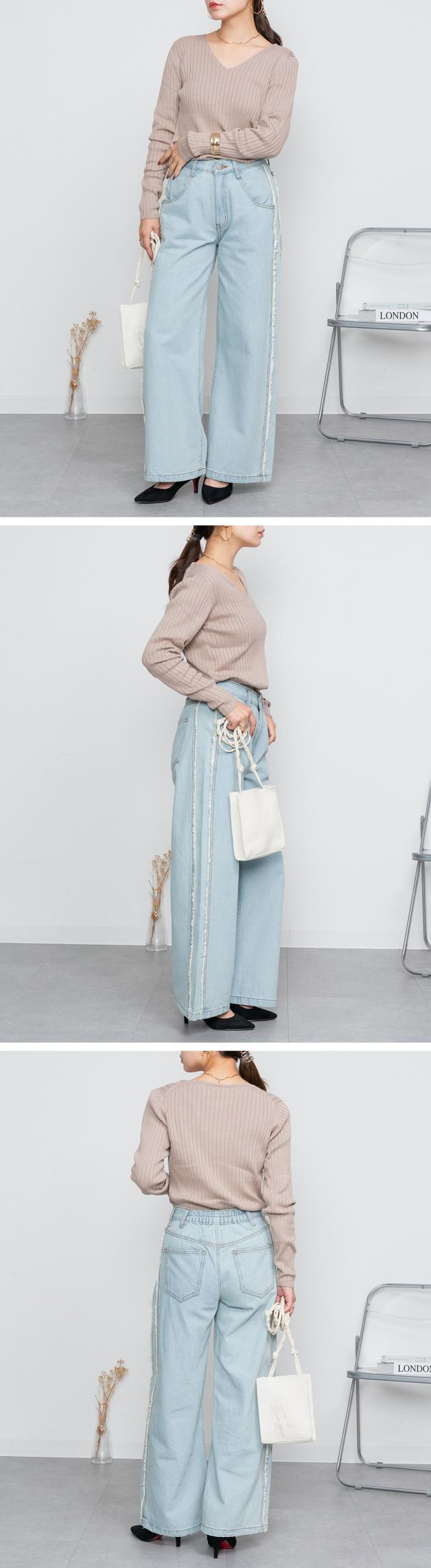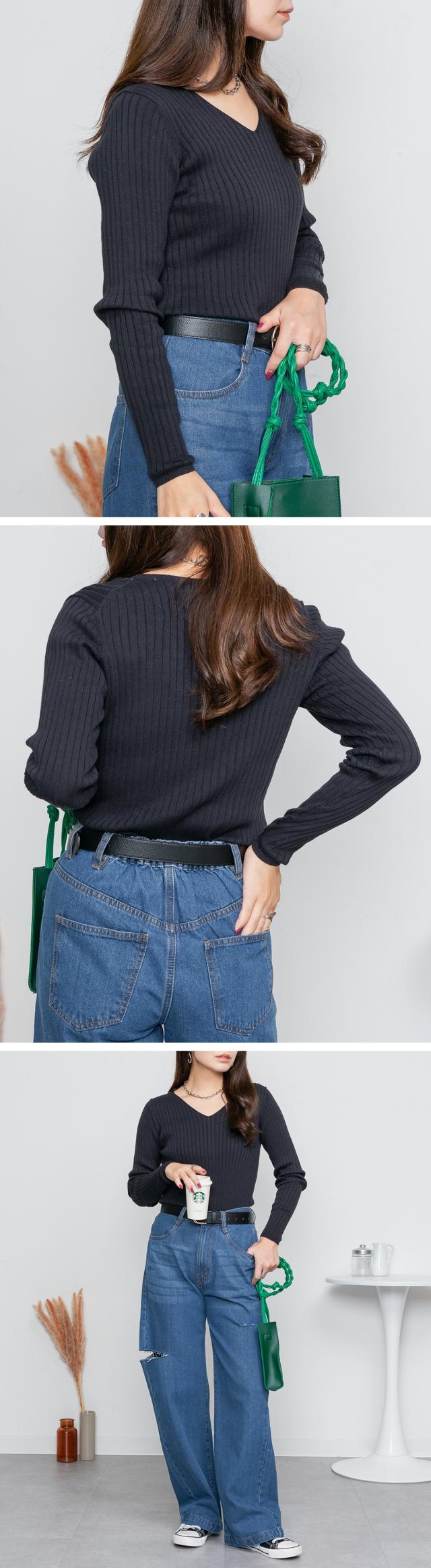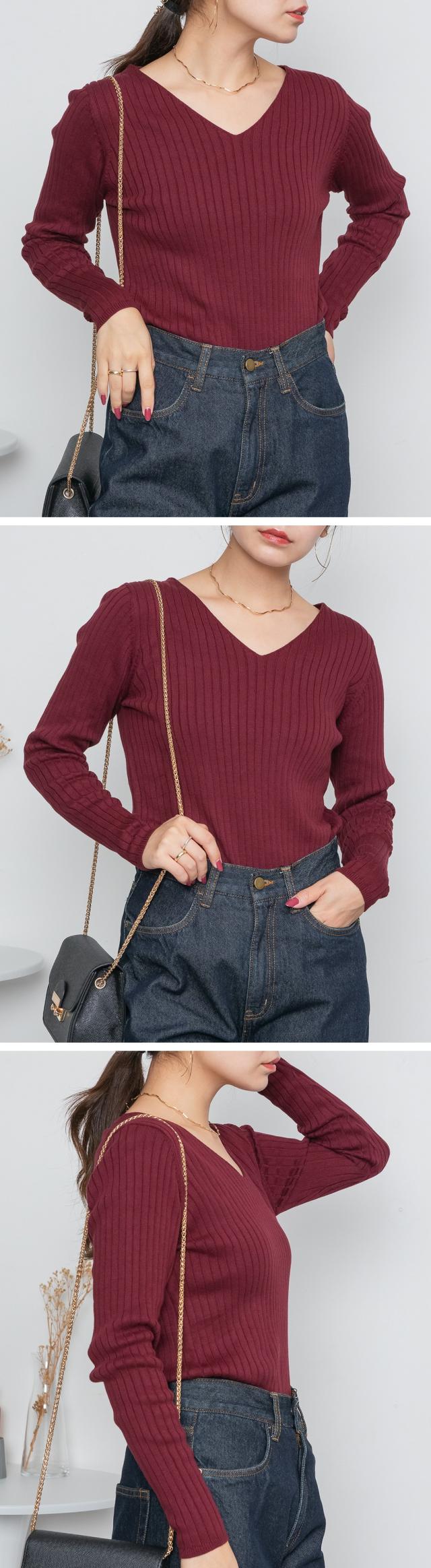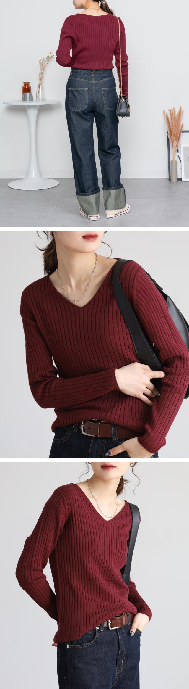 | スッキリとしたVネックデザインが顔周りをシャープに見せてくれるのでコーディネートのアクセントにも。シンプルながらも着回し力抜群のアイテムです♪ |