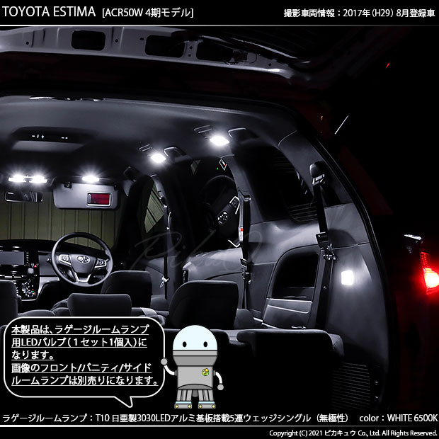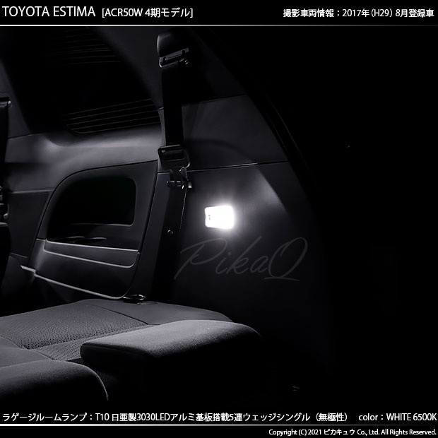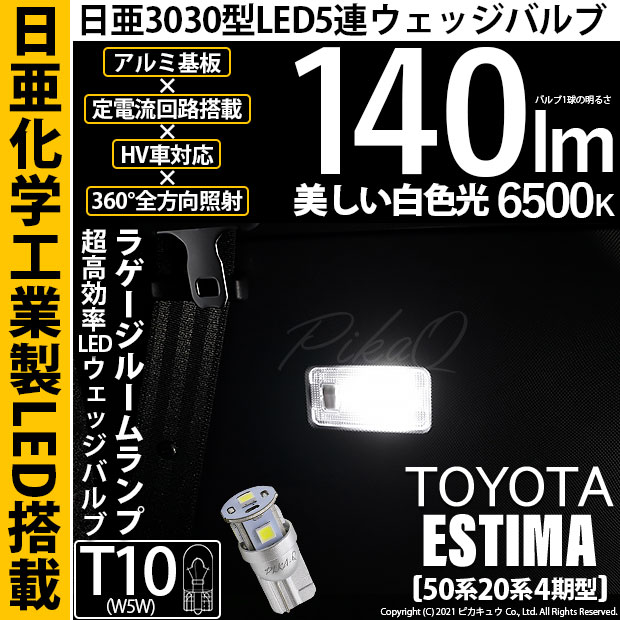 ピカキュウ,LED専門店,LEDバルブ,LED,SMD,T10,W5W,日亜化学工業,日亜,3030,ルームランプ,ラゲージルームランプ,室内灯,爆光,140lm,140ルーメン,トヨタ,3代目エスティマ,エスティマアエラス,TOYOTA,ESTIMA AERAS,ACR50系,20系,4期,後期