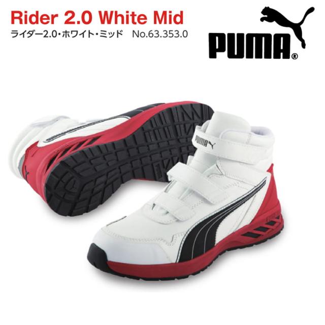 プーマ 安全靴 スニーカー PUMA 安全スニーカー RIDER 2.0 WHITE MID 633530 おしゃれ メンズ 作業用 普段用 耐油 衝撃吸収 樹脂先芯 軽量
