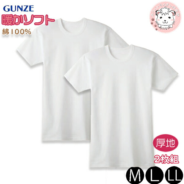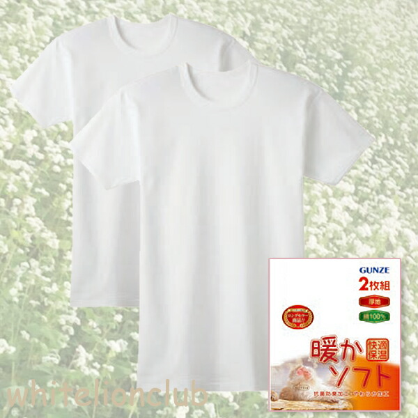 グンゼ 保温平台 半袖 丸首 暖かソフト 2枚組 抗菌防臭 本体綿100% M/L/LL | 厚地 やわらか加工 メンズ 秋冬 秋 冬 綿 シャツ インナー 下着 肌着 RP6514A GUNZE