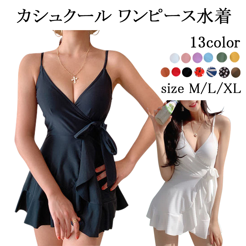 カシュクールワンピース水着 水着 レディース 水着 体型カバー ビキニ 大きいサイズ ビキニ 人気 盛れる リボン Vネック フリル ワンピース シンプル フェミニン ガーリー キュート セクシー 大人可愛い SNS映え 美脚効果 脚長 スレンダー プール 海 温泉 学生 OL