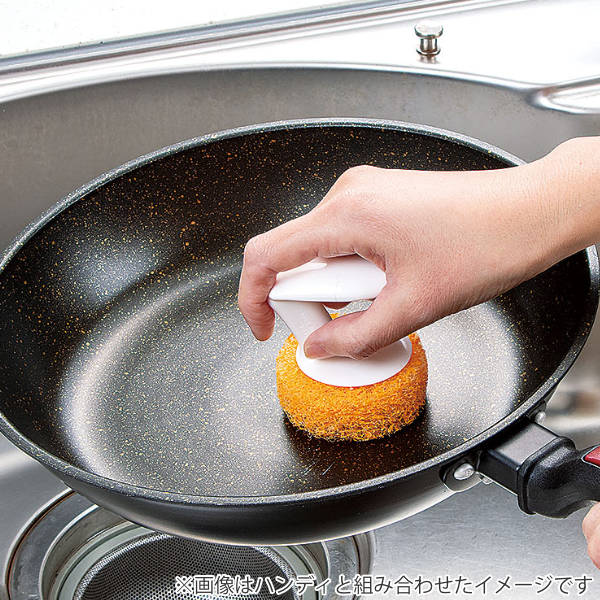 スポンジ単品でも使えますが、握りやすく、力が入りやすいグリップ付きの鍋用ハンディ(別売り)の替え用スポンジとしても。毎日使うものだから汚れてきたら取り換えることができるので安心ですね。