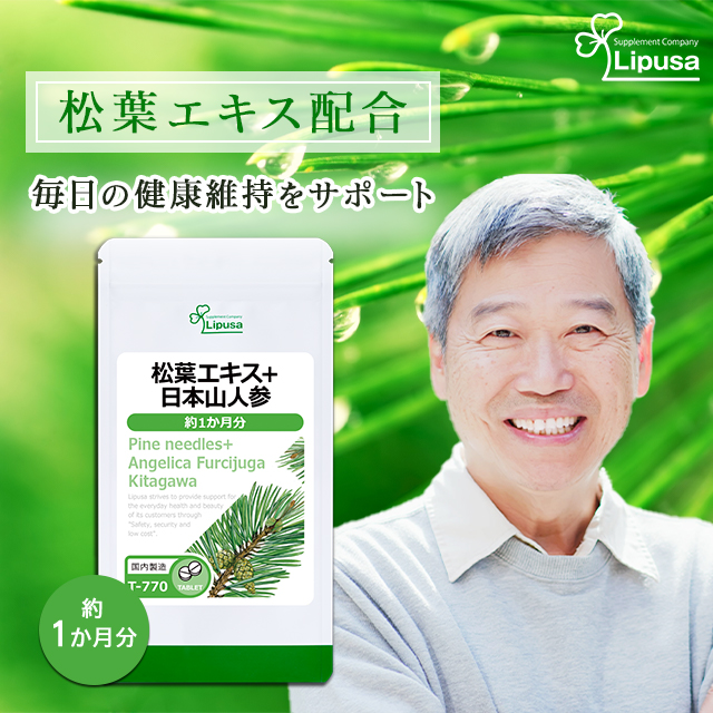 松葉エキス+日本山人参 約1か月分 T-770 (90粒) 送料無料 健康 松の葉 赤松 松葉茶 サプリ リプサ Lipusa 公式 agesugi_sbe