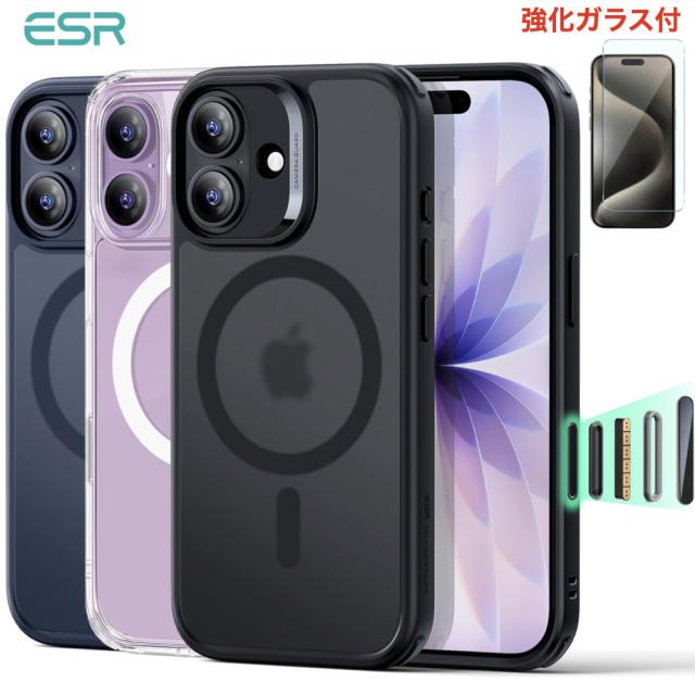 ESR iPhone 17 ケース iPhone 17 Air 17 Pro 17 Pro Max 16e 16Pro 16Plus 16Pro Max iPhone 15 13 14 シリーズ カバー ハイブリッドケース HaloLock付き Magsafe対応 透明 黄変しにくい クリア 強化ガラスフィルム付き