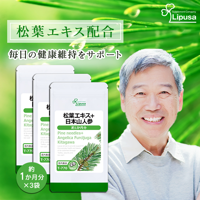 松葉エキス+日本山人参 約1か月分×3袋 T-770-3 (90粒×3袋) 送料無料 健康 松の葉 赤松 松葉茶 サプリ リプサ Lipusa 公式 agesugi_sbe